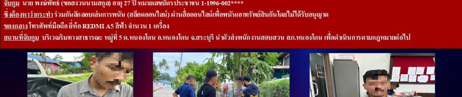 ชุดสืบสวนจับกุมผู้ต้องหาร่วมกันลักลอบเล่นการพนัน สล๊อตออนไลน์