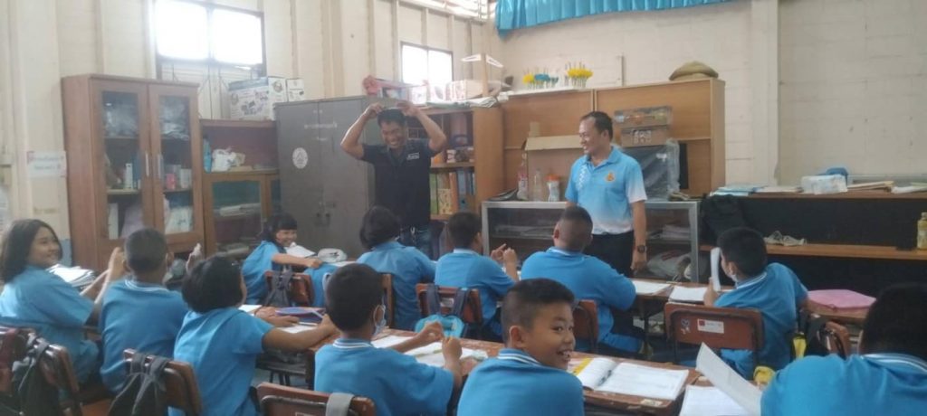 ครูตำรวจแดร์ สภ.หนองโดน เข้าทำการสอนโครงการ การศึกษาเพื่อต่อต้านการใช้ยาเสพติดในเด็กนักเรียน