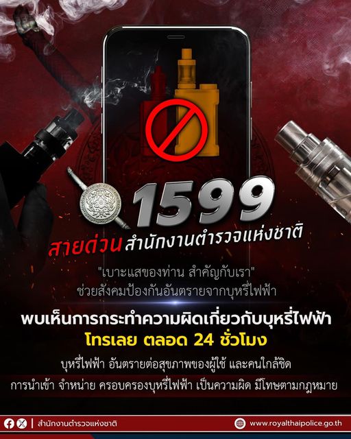 พบเห็นการกระทำความผิดเกี่ยวกับบุหรี่ไฟฟ้า โทรเลย