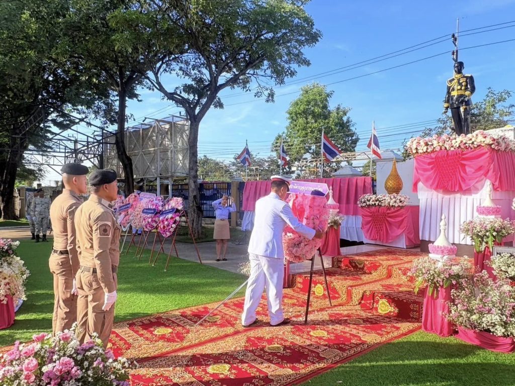 วันนี้(23 ต.ค. 67) เวลา 07.30 น. พ.ต.อ.วิทยากูล เอื้อยฉิมพลี ผกก.สภ.หนองโดน พร้อมด้วย พ.ต.ต.วิโรจน์ กันตุ่ม สวป.ฯ และข้าราชการตำรวจในสังกัด ร่วมพิธีถวายเครื่องราชสักการะ วางพวงมาลา เนื่องใน “วันปิยมหาราช” (วันคล้ายวันสวรรคตพระบาทสมเด็จพระจุลจอมเกล้าเจ้าอยู่หัว) ณ พระบรมราชานุสาวรีย์พระบาทสมเด็จพระจุลจอมเกล้าเจ้าอยู่หัว หน้าที่ว่าการอำเภอหนองโดน จว.สระบุรี