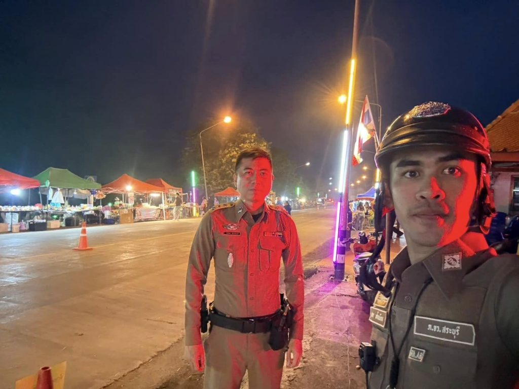 วันที่ 15 พ.ย. 67 พ.ต.อ.วิทยากูล เอื้อยฉิมพลี ผกก.สภ.หนองโดน ,พ.ต.ท.พิชัย ไชยกุล รอง ผกก.ป.ฯ ,พ.ต.ท.คณชัย มาลัย รอง ผกก.สส.ฯ,พ.ต.ท.วีระเกียรติ คำงาม สว.สส.ฯ,พ.ต.ต.วิโรจน์ กันตุ่ม สวป.ฯพร้อมกำลังสายตรวจ จราจร ,เจ้าหน้าที่ฝ่ายปกครอง, อาสาสมัคร,ออกตรวจรักษาความสงบเรียบร้อย และอำนวยความสะดวกการจราจร ในงานประเพณีลอยกระทง วัดคลองบุญ ,สี่แยกสะพานสิบ และสี่แยกบ้านกลับเป็นไปด้วยความเรียบร้อย เหตุการณ์ทั่วไปปกติ
