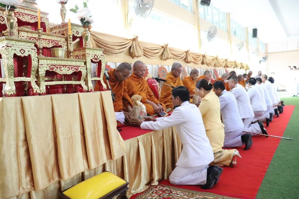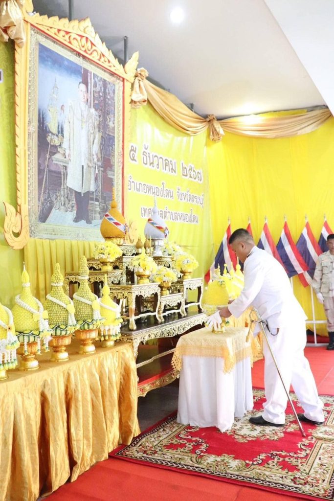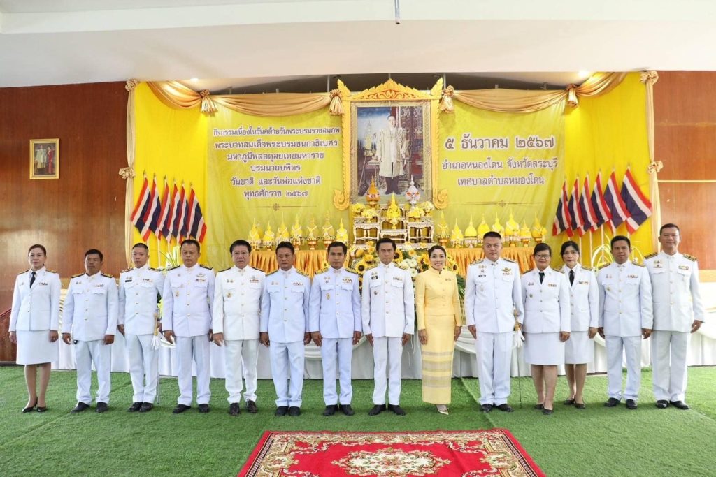วันนี้ 5 ธ.ค.67 เวลา 07.00 น. พ.ต.อ.วิทยากูล เอื้อยฉิมพลี ผกก.สภ.หนองโดน,พ.ต.ท.บุญเกื้อ คล้ายพลอย สว.อก.ฯ และ พ.ต.ต.วิโรจน์ กันตุ่ม สวป. ฯ พร้อมข้าราชการตำรวจ สภ.หนองโดน ร่วมพิธีเจริญพระพุทธมนต์ทำบุญตักบาตรถวายพระราชกุศลและพิธีวางพานพุ่มดอกไม้ถวายราชสักการะเนื่องในวันคล้ายวันพระบรมราชสมภพ พระบาทสมเด็จพระบรมชนกาธิเบศร มหาภูมิพลอดุลยเดชมหาราช บรมนาถบพิตร วันชาติ และวันพ่อแห่งชาติ 5 ธ.ค.2567 ณ หอประชุมเทศบาลตำบลหนองโดน