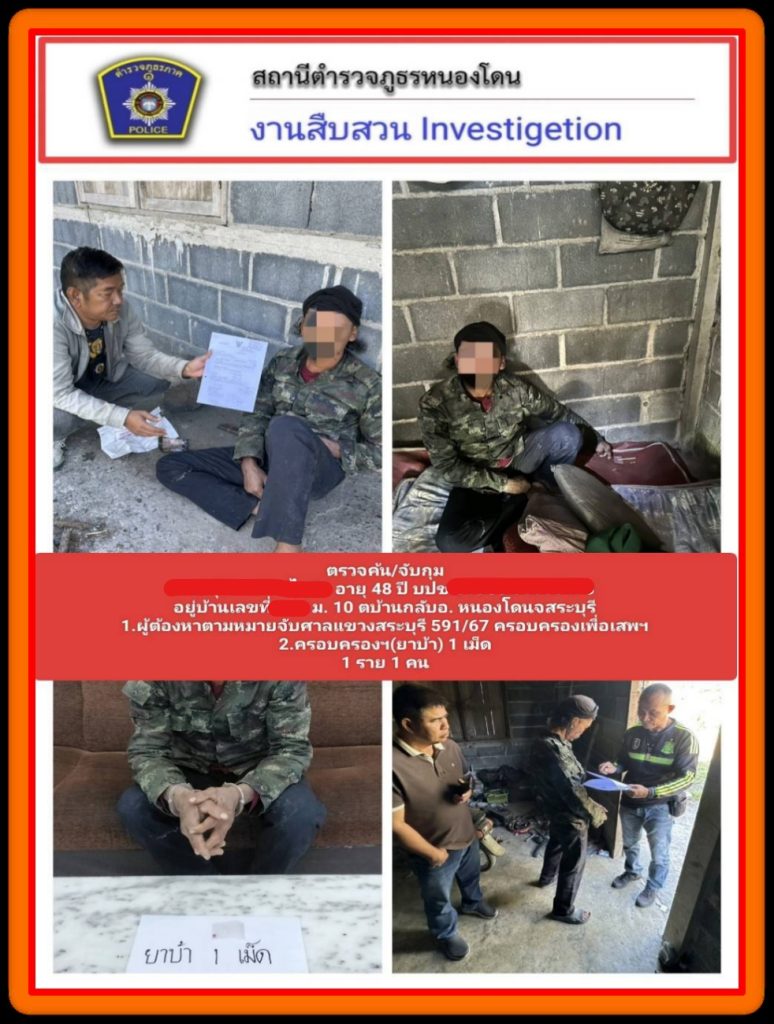 ตรวจค้นบ้านพักไม่มีเลขที่ ต.บ้านกลับ อ.หนองโดน จ.สระบุรี