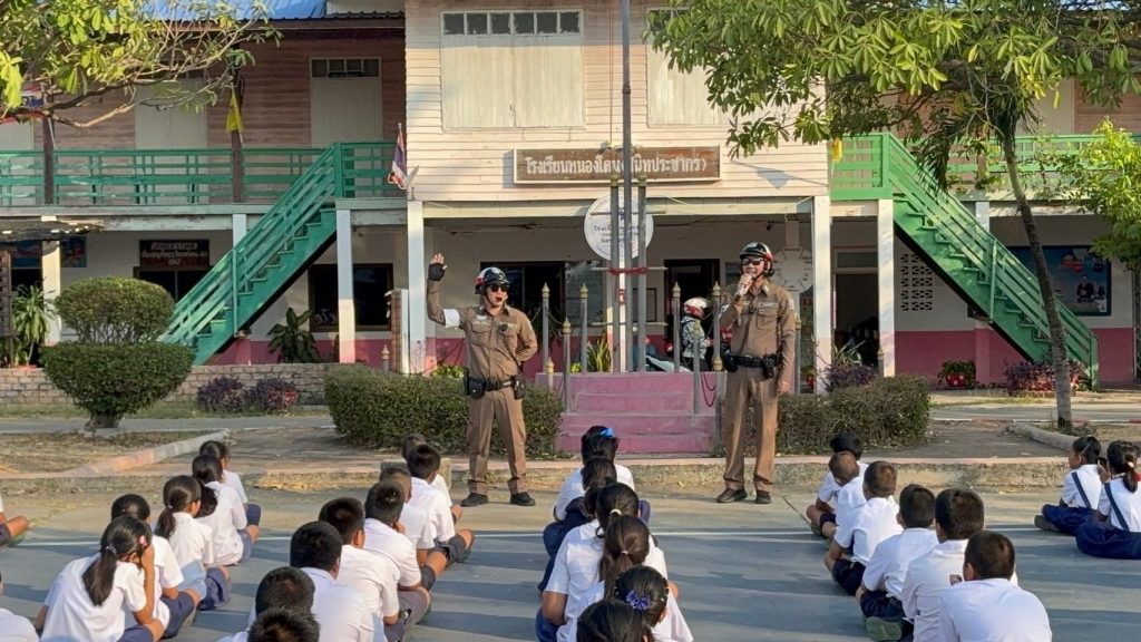 ร.ต.อ.ชัยวัฒน์ เนื่องจำนงค์ รอง สวป.ฯ ปฎิบัติหน้าที่ เวร 6-0 พร้อม สายตรวจจราจร 611 และ 612 ดำเนินโครงการ ครู 5 นาที หน้าเสาธง โดยให้ความรู้การใช้ทางข้ามถนน/ทางม้าลาย และการขับขี่ปลอดภัย ประชาสัมพันธ์ตามโครงการ สวมหมวกนิรภัย 100% พร้อมทั้งอธิบายความผิดและโทษของบุหรี่ไฟฟ้า ให้กับคุณครู และนักเรียน โรงเรียนอนุบาลหนองโดน(สนิทประชากร) ต.หนองโดน อ.หนองโดน จ.สระบุรี