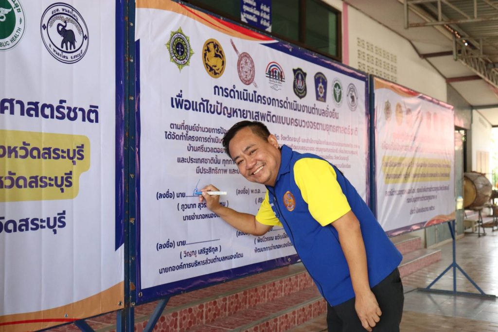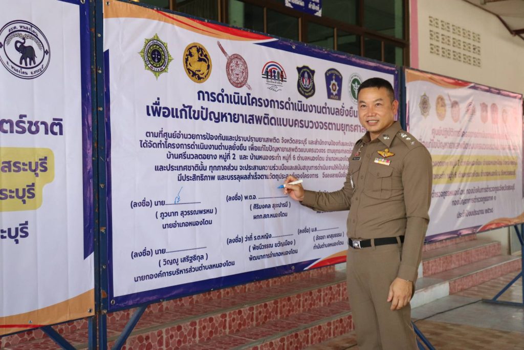 ร่วมพิธีเปิดโครงการดำเนินงานตำบลยั่ง เพื่อแก้ไขปัญหายาเสพติดแบบครบวงจรตามยุทธศาสตร์ชาติ และ ได้ร่วมกันลงนามบันทึกข้อตกลง ความร่วมมือ (MOU) ร่วมกัน โดยมี นายภูวนาท สุวรรณพรหม นายอำเภอหนองโดน เป็นประธาน ณ วัดศรีนวลตอยาง หมู่ 2 ตำบลหนองโดน อำเภอหนองโดน จังหวัดสระบุรี