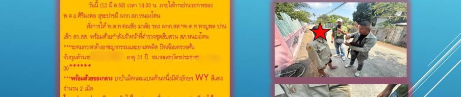 ระดมกวาดล้างอาชญากรรมและยาเสพติด ปิดล้อมตรวจค้น จับกุมตัวนาย*** อายุ 31 ปี หมายเลขบัตรประชาชน ***