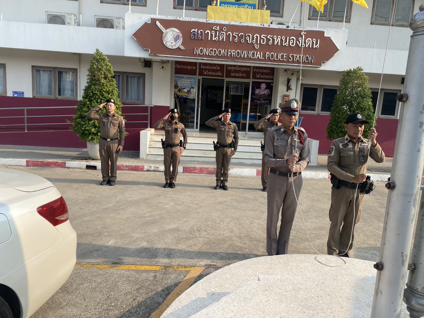 นำแถวสายตรวจรถยนต์ รถจักรยานยนต์ ผลัดเก่า-ผลัดใหม่ เคารพธงชาติ ไหว้พระสวดมนต์ ให้กล่าวอุดมคติตำรวจ กล่าวคำปฏิญาณตน ท่องสิทธิฯผู้ถูกจับกุม ท่องวิสัยทัศน์ฯ อบรมชี้แจงแนวทางการปฏิบัติฯ ไม่ให้เรียกรับสินบนหรือผลประโยชน์อื่นใด เพื่อช่วยเหลือผู้กระทำผิดทุกกรณี
