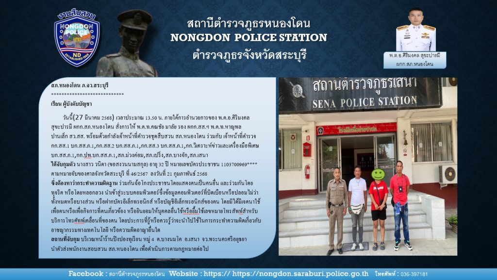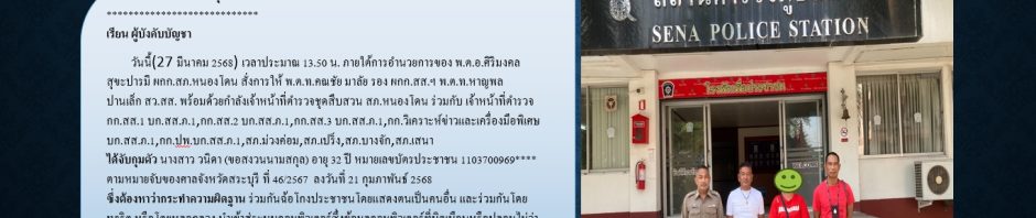 วันที่ 27 มีนาคม 2568 เวลาประมาณ 13.50 น. ภายใต้การอำนวยการของ พ.ต.อ.ศิริมงคล สุขะปารมี