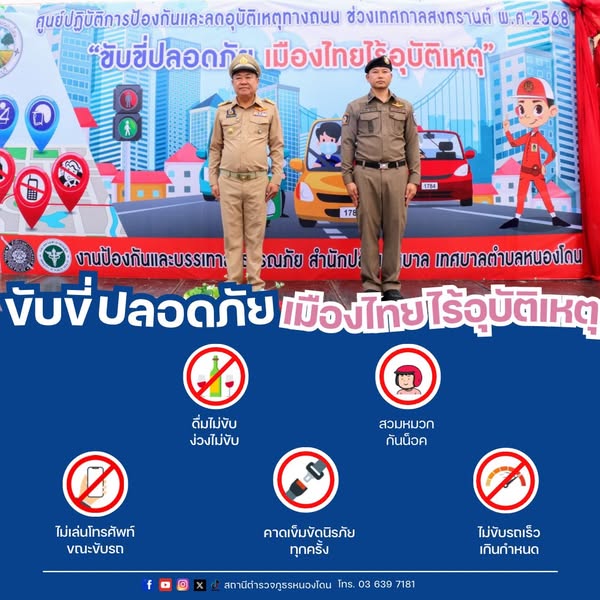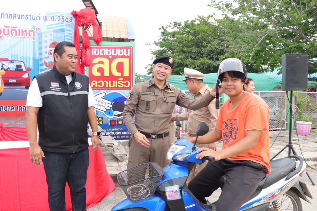 ทั้งนี้ ภายหลังจากพิธีปล่อยแถวฯ ได้มีการมอบหมวกนิรภัยให้แก่ประชาชนที่ขี่รถจักรยานยนต์ สัญจรผ่านไปมา โดยเน้นย้ำให้สวมหมวก 100 % เพื่อเป็นการป้องกันและลดอุบัติเหตุทางถนนช่วงเทศกาลสงกรานต์ พ.ศ. 2568