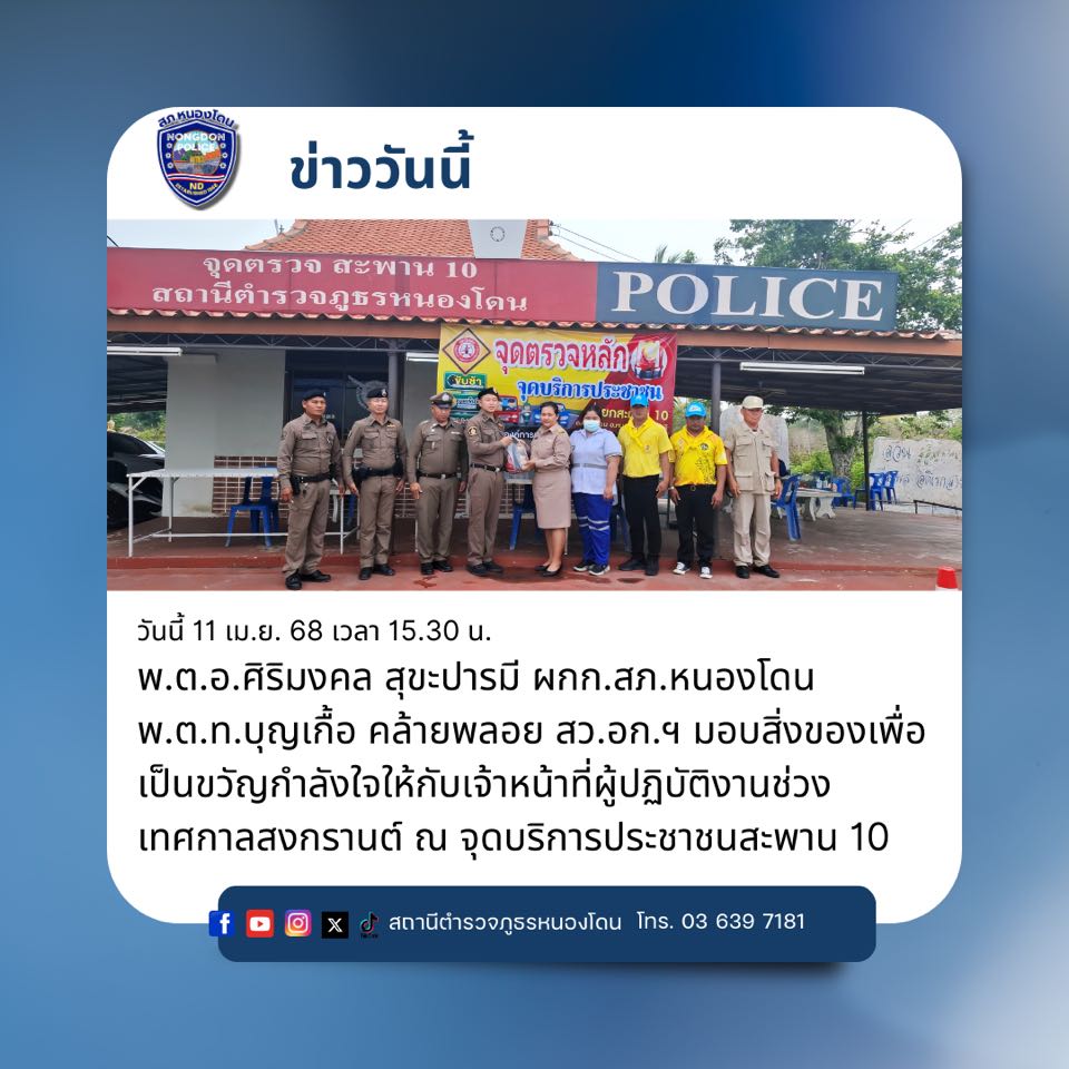 ผกก. มอบสิ่งของให้กับเจ้าหน้าที่ผู้ปฏิบัติงานช่วงเทศกาลสงกรานต์