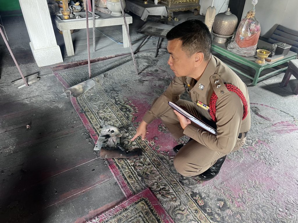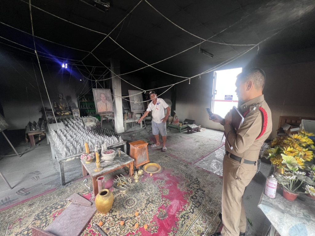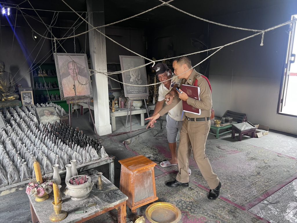วันที่ ( 8 ต.ค.68) เวลาประมาณ 14.50 น. ร.ต.อ.คำฝน อุทัยมา รอง สว.(สอบสวน) สภ.หนองโดน พนักงานสอบสวน ได้รับแจ้งจากศูนย์วิทยุ สภ.หนองโดน ว่าได้รับแจ้งว่า มีเหตุไฟไหม้กุฏิพระ วัดบ้านโปร่งเก่า หมู่ที่ 3 ต.บ้านโปร่งฯ ได้รับความเสียหาย จึงร่วมกันเดินทางไปตรวจสอบ เมื่อไปถึงที่เกิดเหตุ พบว่าที่เกิดเหตุ เป็นกุฏิพระชั้นเดียว ทำด้วยปูน ตรวจสอบตัวตัวกุฏิ ได้รับความเสียหายเล็กน้อย ตรวจสอบภายในกุฏิ มีทรัพย์สินเสียหายคือ 1.วัตถุมงคลรูปหล่อคุณบุญเรือน ขนาดหน้าตัก 3 นิ้ว ได้รับความเสียหาย จำนวน 64 องค์ 2.รูปภาพและกรอบรูปคุณบุญเรือน ได้รับความเสียหาย 100 บาน (ไฟไหม้) รวมมูลค่าความเสียหายประมาณ 25,000 บาท