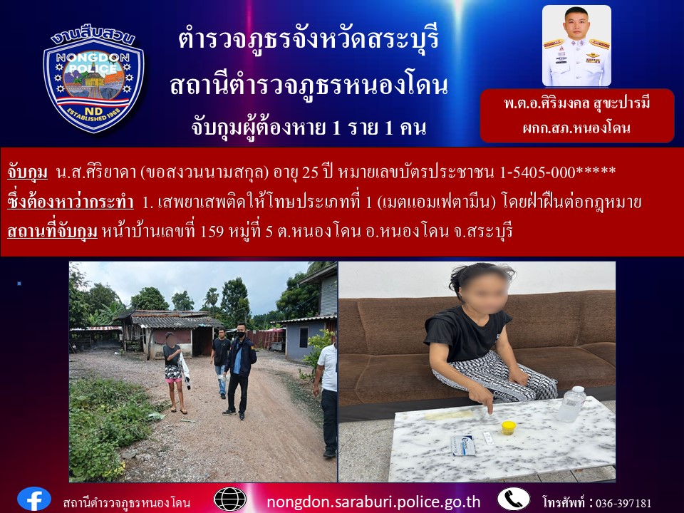 🔺จับกุมตัว นายศิริยาดา (ขอสงวนนามสกุล) อายุ 25 ปี หมายเลขบัตรประชาชน 1-5405-000*