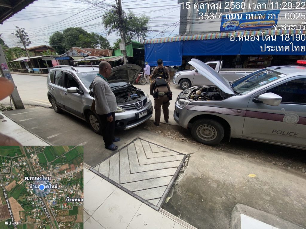 วันที่ 15 ตุลาคม 68 เวลา 11.30 น. ร.ต.อ.ลิขิต ภูพานทอง รอง สวป.ร้อยเวร 2-0 พร้อมสายตรวจประกอบด้วย ส.ต.ต.อัครเดช จันทร์เหลือ ผบ.หมู่(ป.)ฯ และ ส.ต.ต.ณัฐดนัย ทองดีโลก ผบ.หมู่(ป.)ฯ