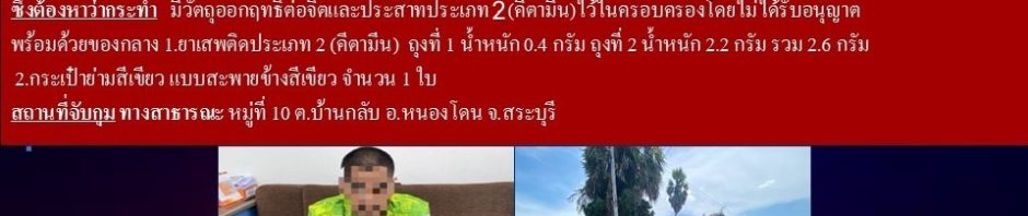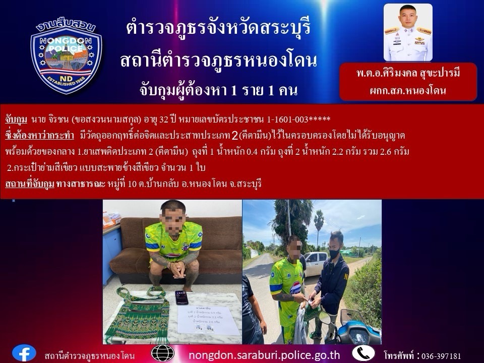 🔺 สถานที่จับกุม ทางสาธารณะ หมู่ที่ 10 ต.บ้านกลับ อ.หนองโดน จ.สระบุรี