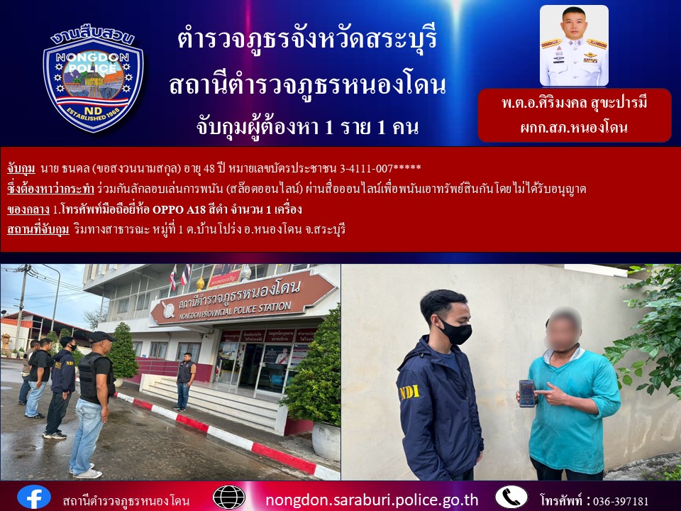 🔺จับกุมตัว นาย ธนดล (ขอสงวนนามสกุล) อายุ 48 ปี หมายเลขบัตรประชาชน 3-4111-007*