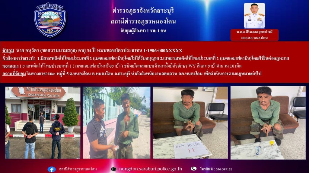 🔺จับกุมตัว นาย อนุวัตร (ขอสงวนนามสกุล) อายุ 34 ปี หมายเลขบัตรประชาชน 1-1906-000XXXXX