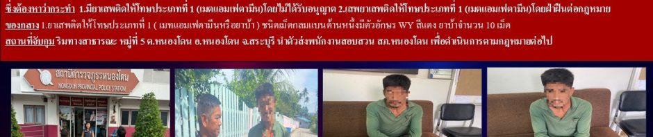🔺 สถานที่จับกุม บริเวณหน้าบ้านเพิงพักไม่มีเลขที่ หมู่ที่ 5 ต.หนองโดน อ.หนองโดน จ.สระบุรี