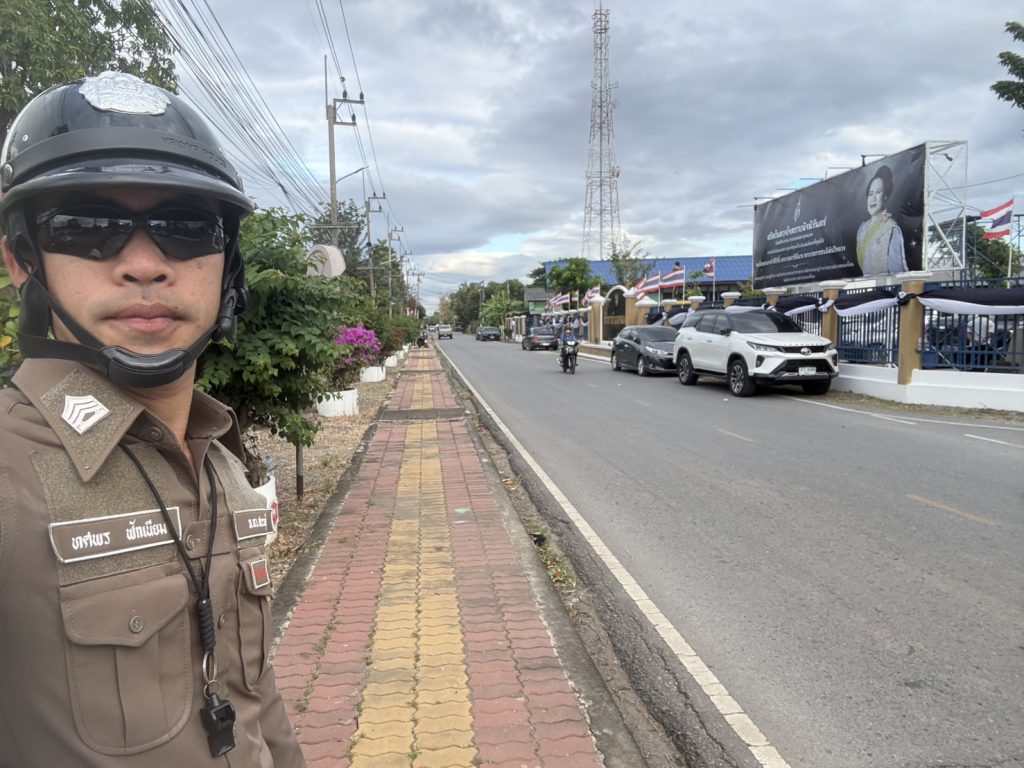 วันที่ 5 ธ.ค.68 07.30 น. จ.ส.ต.ทศพร ฟักเนียม ผบ.หมู่(ป.) สภ.หนองโดน ,ส.ต.ท.ชัยวัฒน์ อินต๊ะนำ ผบ.หมู่(ป.)ฯ และ ส.ต.ต..ณัฐดนัย ทองดีโลก ผบ.หมู่(ป.)ฯ ปฏิบัติหน้าที่อำนวยความสะดวกการจราจร เนื่องในวันคล้ายวันพระบรมราชสมภพพระบาทสมเด็จพระบรมชนกาธิเบศร มหาภูมิพลอดุลยเดชมหาราช บรมนาถบพิตร วันชาติ และวันพ่อแห่งชาติ ณ บริเวณหน้าที่ว่าการอำเภอหนองโดน