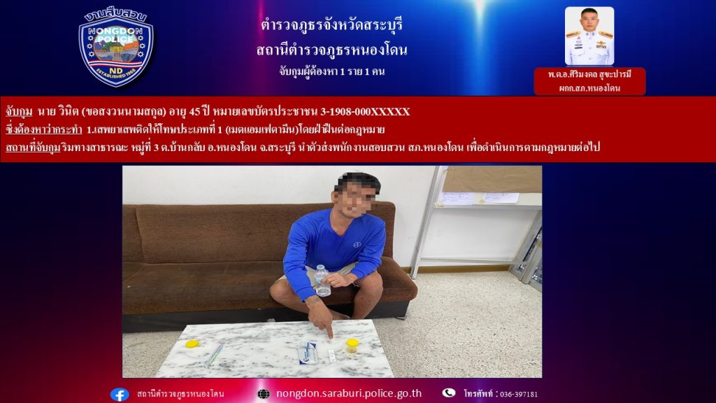 🔺จับกุมตัว นาย วินิต (ขอสงวนนามสกุล) อายุ 45 ปี หมายเลขบัตรประชาชน 3-1908-000XXXXX