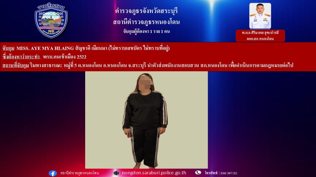 🔺จับกุมตัว MISS. AYE xx สัญชาติ เมียนมา (ไม่ทราบเลขบัตร ไม่ทราบที่อยู่)