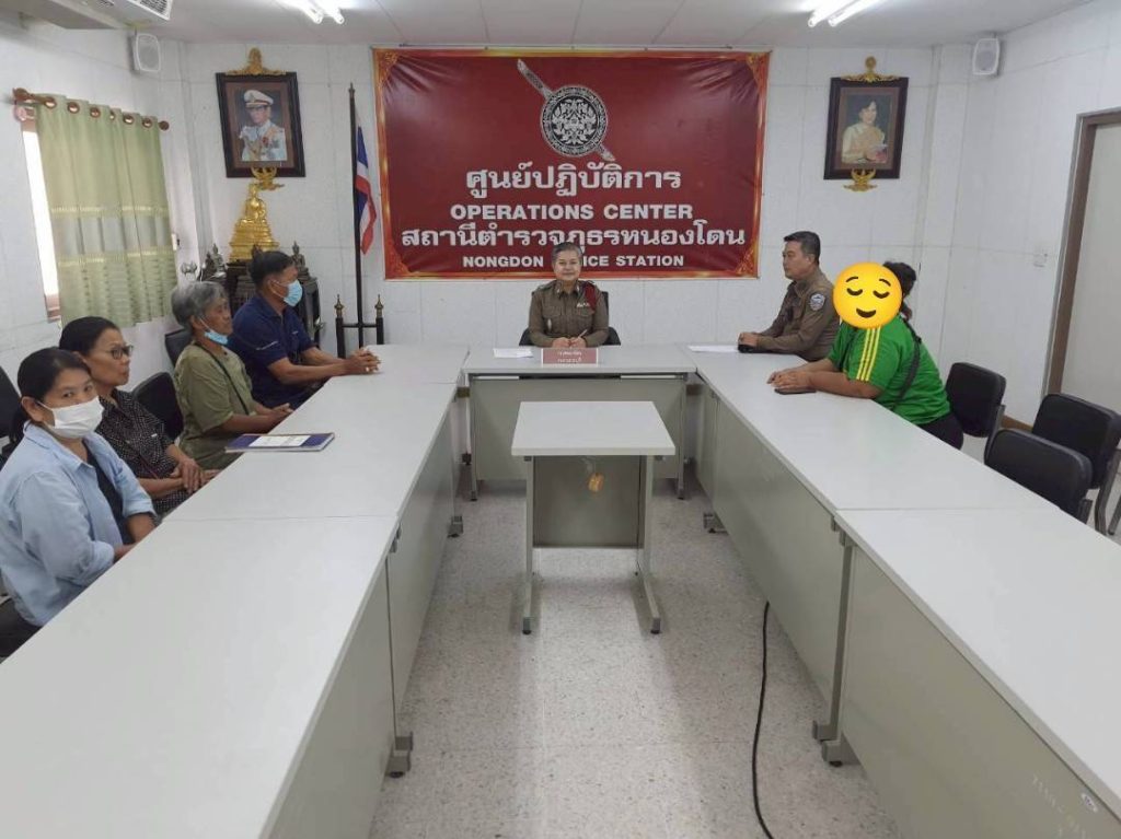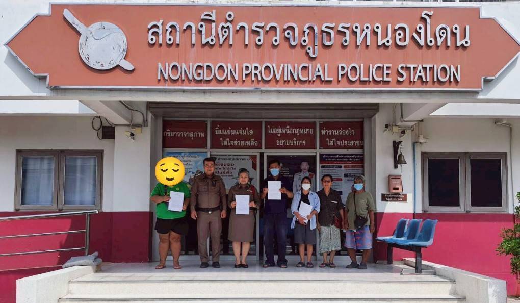 พ.ต.อ.ศิริมงคล สุขะปารมี ผกก.สภ.หนองโดน , พ.ต.ท.ประจักษ์ เจริญสลุง รอง ผกก.(สอบสวน)ฯ,ร.ต.ท.อนุชา ฉิมเล็ก ประธาน ศกช.ฯ และ พ.ต.ต.หญิง พรชรินทร์ วรแสน ผู้ไกล่เกลี่ย พร้อมคณะทำงานบริหารศูนย์ไกล่เกลี่ยข้อพิพาทภาคประชาชนตำบลบ้านกลับ(เลขทะเบียน ศกช.สบ 080201)