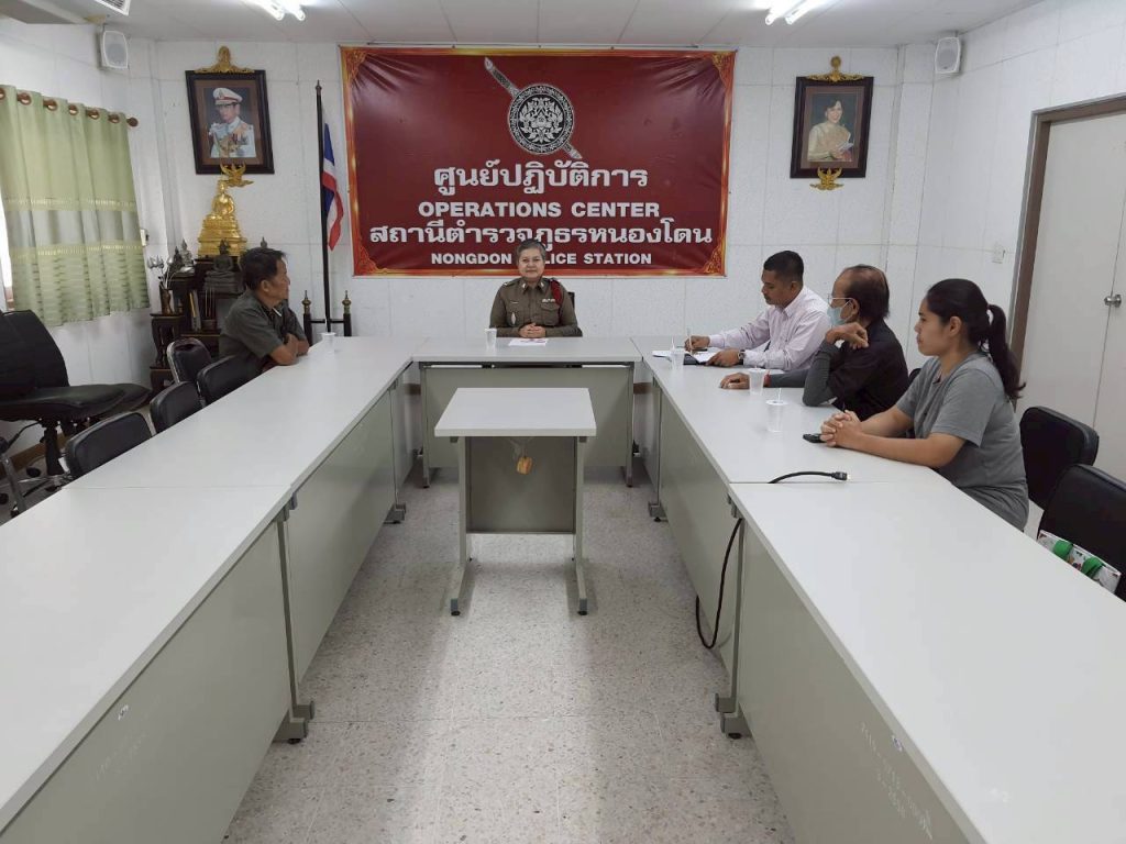 พ.ต.อ.ศิริมงคล สุขะปารมี ผกก.สภ.หนองโดน , พ.ต.ท.ประจักษ์ เจริญสลุง รอง ผกก.(สอบสวน)ฯ,ร.ต.ท.อนุชา ฉิมเล็ก ประธาน ศกช.ฯ ,พ.ต.ท.เธียรวิชญ์ พลเยี่ยม สว.(สอบสวน)ฯ และ พ.ต.ต.หญิง พรชรินทร์ วรแสน ผู้ไกล่เกลี่ย พร้อมคณะทำงานบริหารศูนย์ไกล่เกลี่ยข้อพิพาทภาคประชาชนตำบลบ้านกลับ(เลขทะเบียน ศกช.สบ 080201)