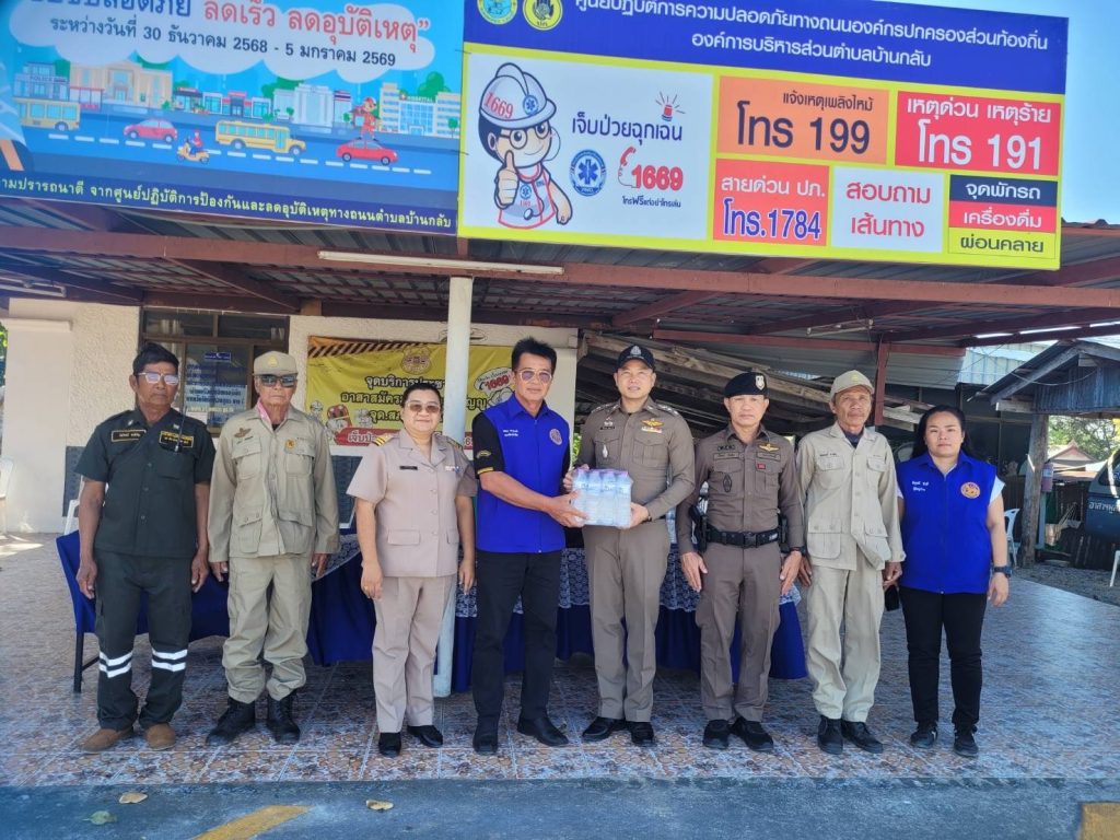 -ได้มอบน้ำดื่ม ให้ไว้ประจำจุดบริการประชาชน ให้กำลังใจในการปฏิบัติหน้าที่