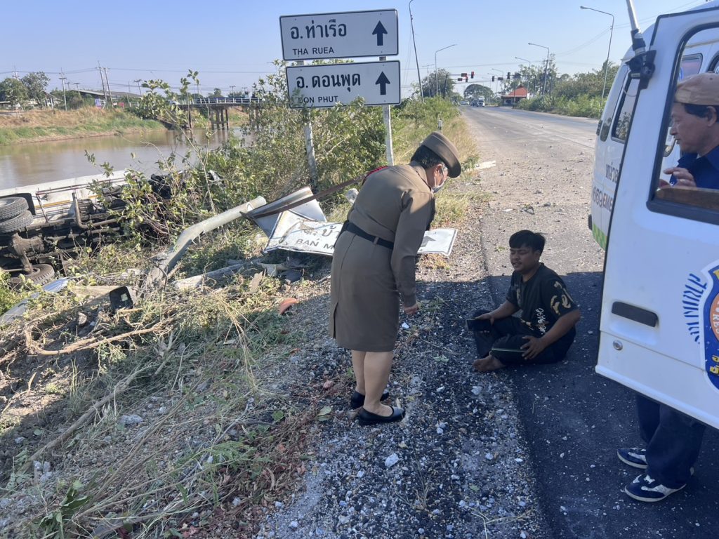 วันที่ 9 ม.ค.69 เวลา 15.30 น. พ.ต.ต.หญิง พรชรินทร์ วนแสน สว.(สอบสวน) สภ.หนองโดน ตรวจสอบเหตุ รถบรรทุกสิบล้อ ประสบอุบัติเหตุด้วยตนเอง เฉี่ยวชนทรัพย์สินหลวงเสียหาย (ป้ายบอกทาง) บริเวณ ก่อนแยกไฟแดงสะพานสิบ ผู้ขับขี่ได้รับบาดเจ็บเล็กน้อย