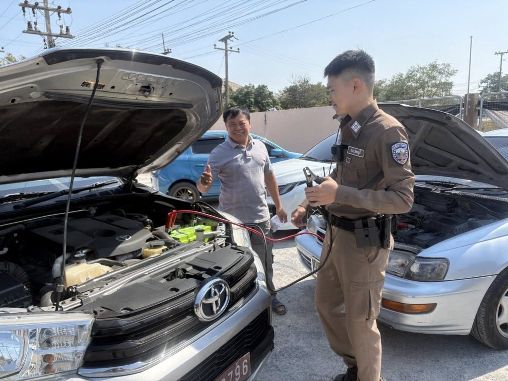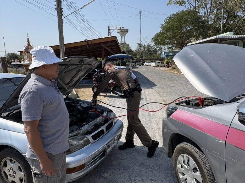 วันที่ 12 ม.ค.69 เวลา 11.30 น. จ.ส.ต.ทศพร ฟักเนียม ผบ.หมู่(ป.) สภ.หนองโดน และ ส.ต.ต. ณัฐดนัย ทองดีโลก บ.หมู่(ป.) สภ.หนองโดน ปฏิบัติหน้าที่จราจร ปฏิบัติหน้าที่จราจร ได้รับแจ้งจากศูนย์วิทยุหนองโดน ประชาชนขอความช่วยเหลือ รถยนต์แบตเตอรี่หมด บริเวณลานจอดรถ รพ.หนองโดน จึงได้ให้ความช่วยเหลือพ่วงแบตฯ จนสามารถสตาร์ทติดเดินทางต่อไปได้