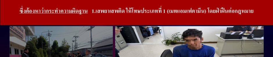 🔺ซึ่งต้องหาว่ากระทำความผิดฐาน 1. เสพยาเสพติดให้โทษประเภทที่ 1 (เมตแอมเฟตามีน)โดยฝ่าฝืนต่อกฎหมาย