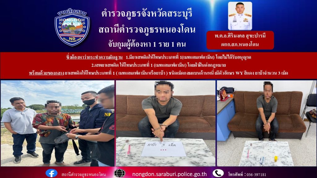 นำตัวส่งพนักงานสอบสวน สภ.หนองโดน เพื่อดำเนินการตามกฎหมายต่อไป