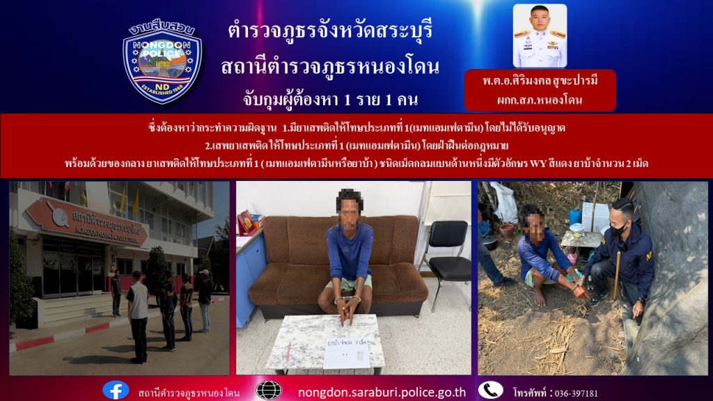 🔺 สถานที่จับกุม บริเวณเพิงพักไม่มีเลขที่ หมู่ 4 ต.ดอนทอง อ.หนองโดน จ.สระบุรี