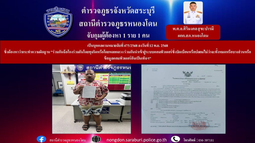 เป็นบุคคลตามหมายจับที่ 475/2568 ลงวันที่ 12 พ.ย. 2568