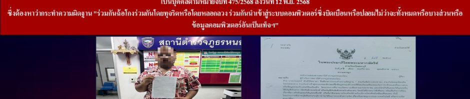 🔺ซึ่งต้องหาว่ากระทำความผิดฐาน “ร่วมกันฉ้อโกงร่วมกันโดยทุจริตหรือโดยหลอกลวง ร่วมกันนำเข้าสู่ระบบคอมพิวเตอร์ซึ่งบิดเบือนหรือปลอมไม่ว่าจะทั้งหมดหรือบางส่วนหรือข้อมูลคอมพิวเตอร์อันเป็นเท็จฯ”