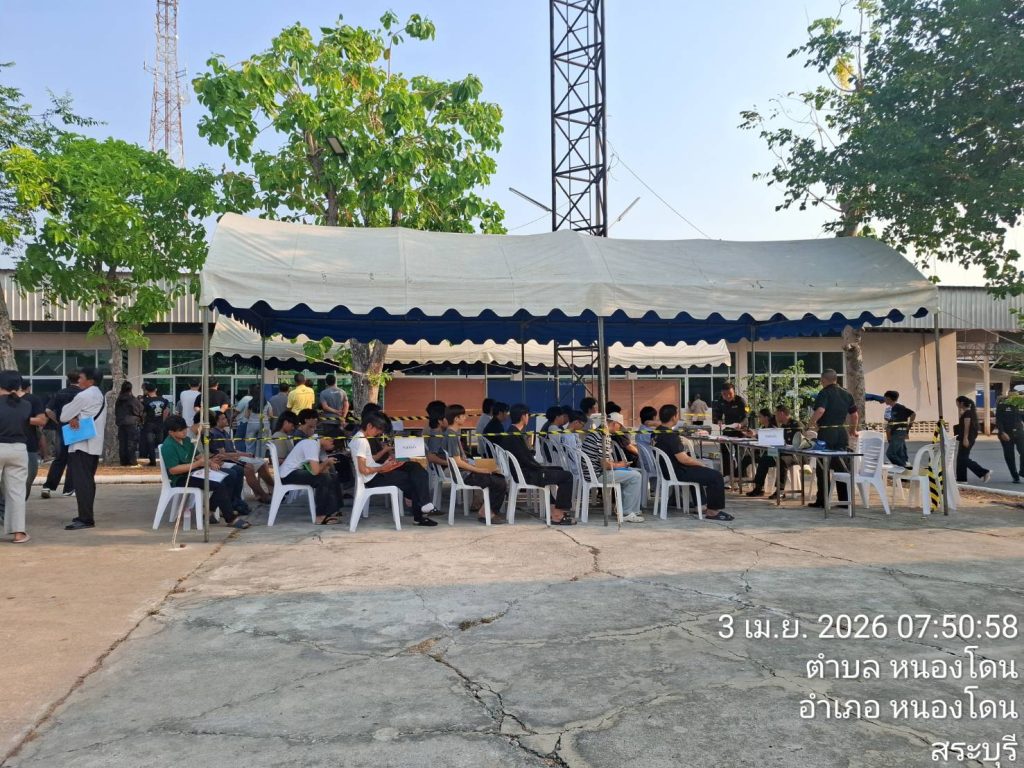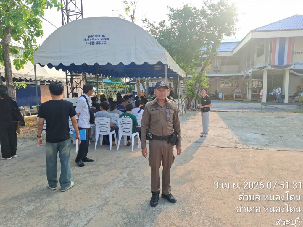 วันที่ 3 เม.ย.69 เวลา 08.00 น. ด.ต.สยาม เสาโร ผบ.หมู่(ป.)สภ.หนองโดน ปฏิบัติหน้าที่รักษาความสงบเรียบร้อยงานคัดเลือกการเกณฑ์ทหาร ณ ที่ว่าการอำเภอหนองโดน