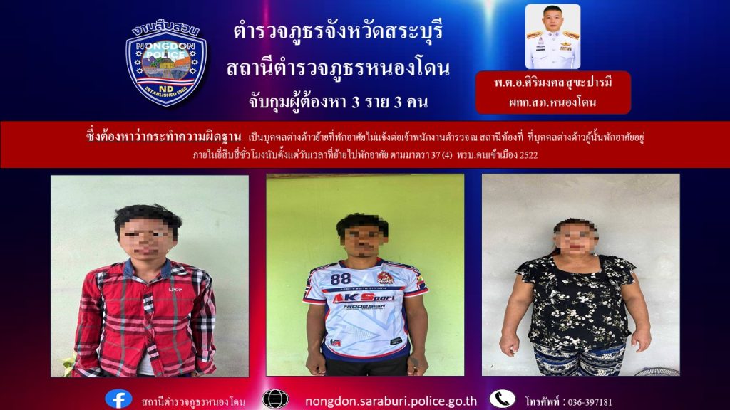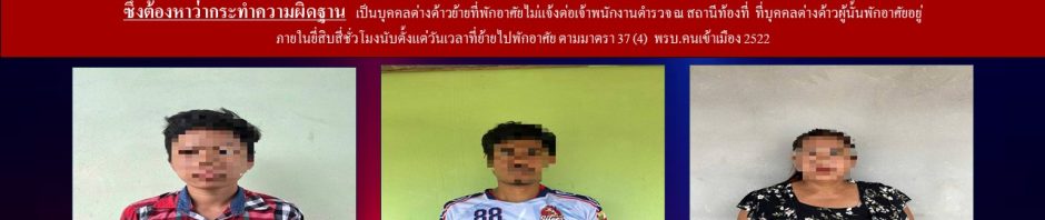 🔺ซึ่งต้องหาว่ากระทำความผิดฐานเป็นบุคคลต่างด้าวย้ายที่พักอาศัยไม่แจ้งต่อเจ้าพนักงานตำรวจ ณ สถานีท้องที่ ที่บุคคลต่างด้าวผู้นั้นพักอาศัยอยู่ ภายในยี่สิบสี่ชั่วโมงนับตั้งแต่วันเวลาที่ย้ายไปพักอาศัย ตามมาตรา 37 (4) พรบ.คนเข้าเมือง 2522