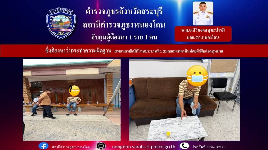 🔺 สถานที่จับกุม บริเวณหน้าบ้านเลขที่ xx หมู่ 6 ต.บ้านกลับ อ.หนองโดน จ.สระบุรี