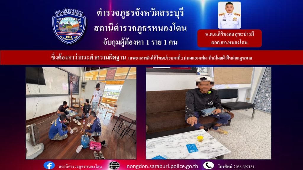 🔺 สถานที่จับกุม บริเวณโรงเรียนหนองโดน หมู่ที่ 3 ต.หนองโดน อ.หนองโดน จ.สระบุรี