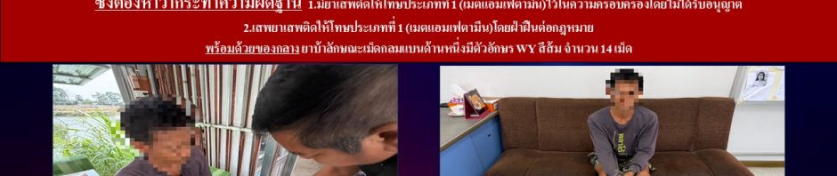 🔺พร้อมด้วยของกลาง 1.ยาบ้าลักษณะเม็ดกลมแบนด้านหนึ่งมีตัวอักษร WY สีส้ม จำนวน 14 เม็ด 2.กระเป๋าย่ามสะพายข้าง จำนวน 1 ใบ