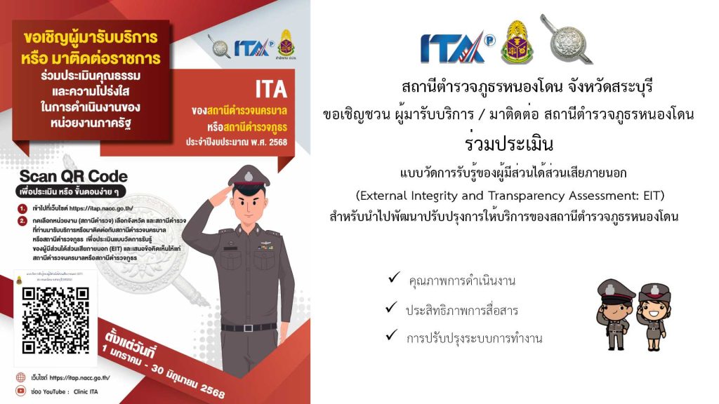 การประชาสัมพันธ์ข้อมูลการประเมินคุณธรรมและความโปร่งใสในการดำเนินงานของหน่วยงานภาครัฐ (Integrity & Transparency Assessment : ITA) ปีงบประมาณ พ.ศ. 2568